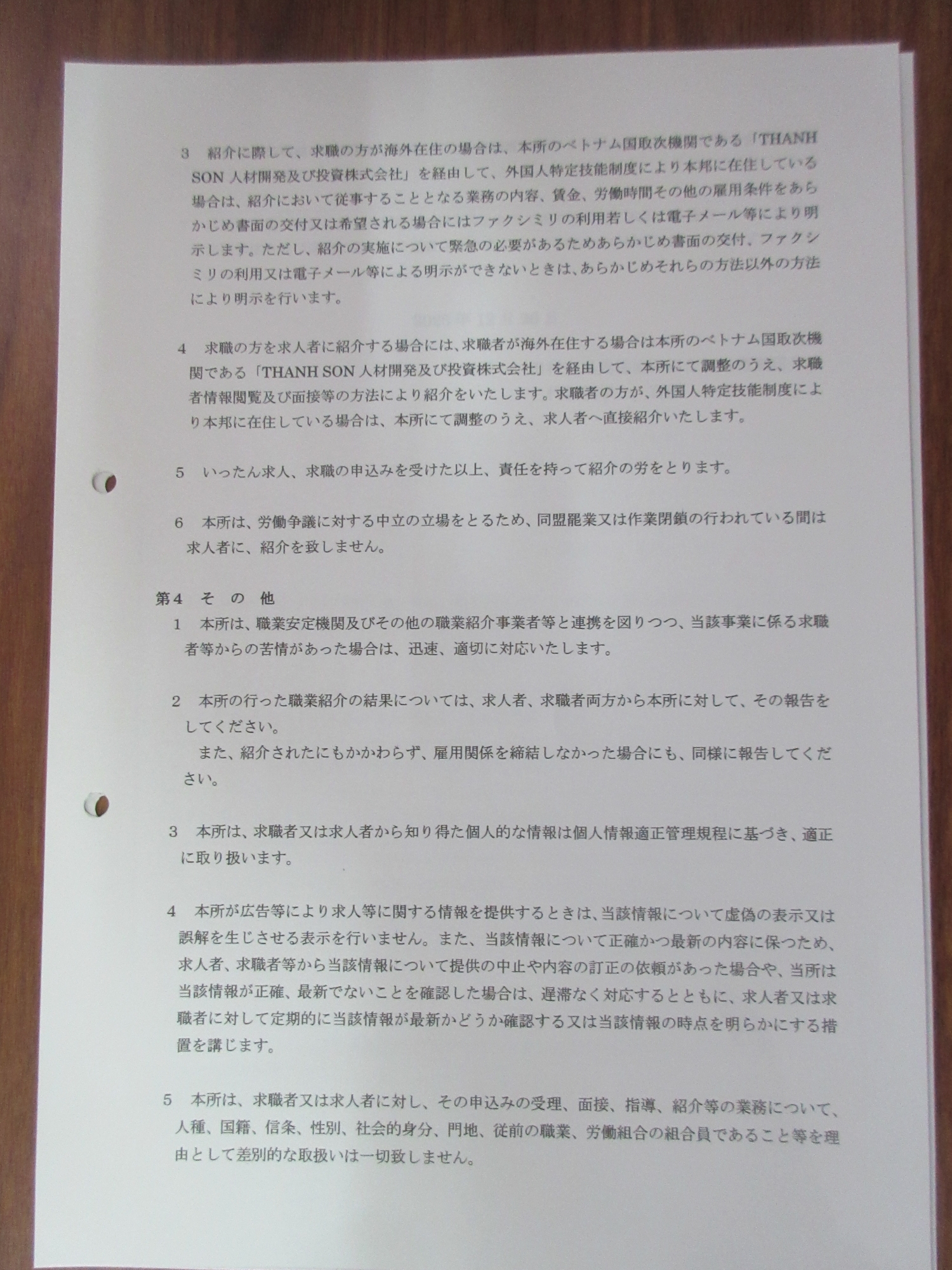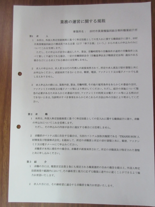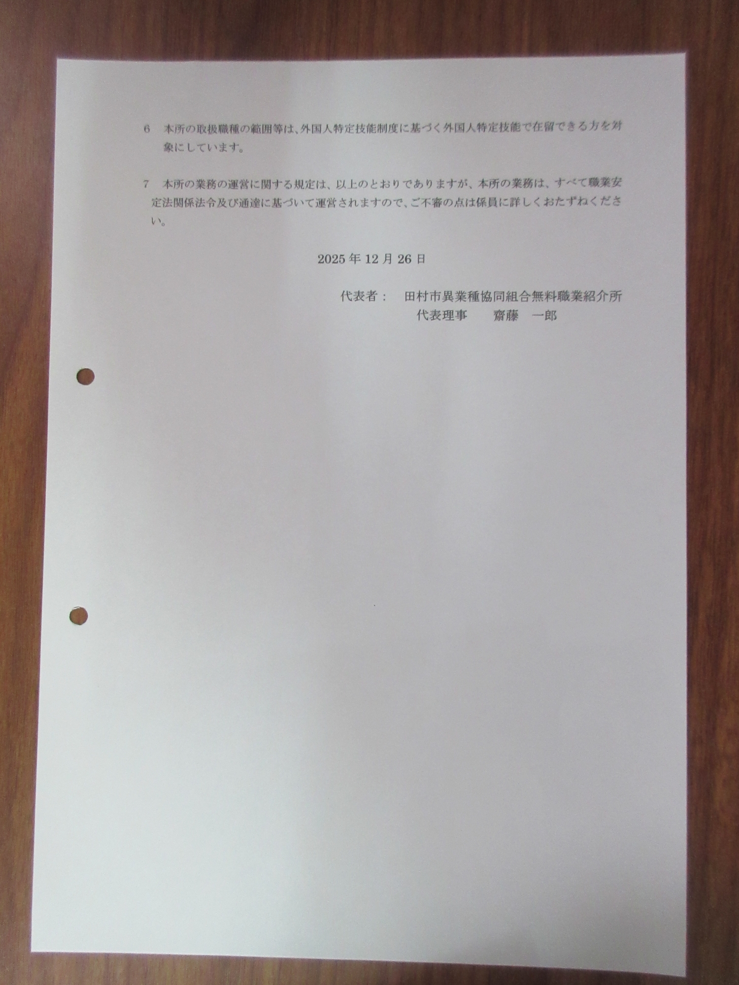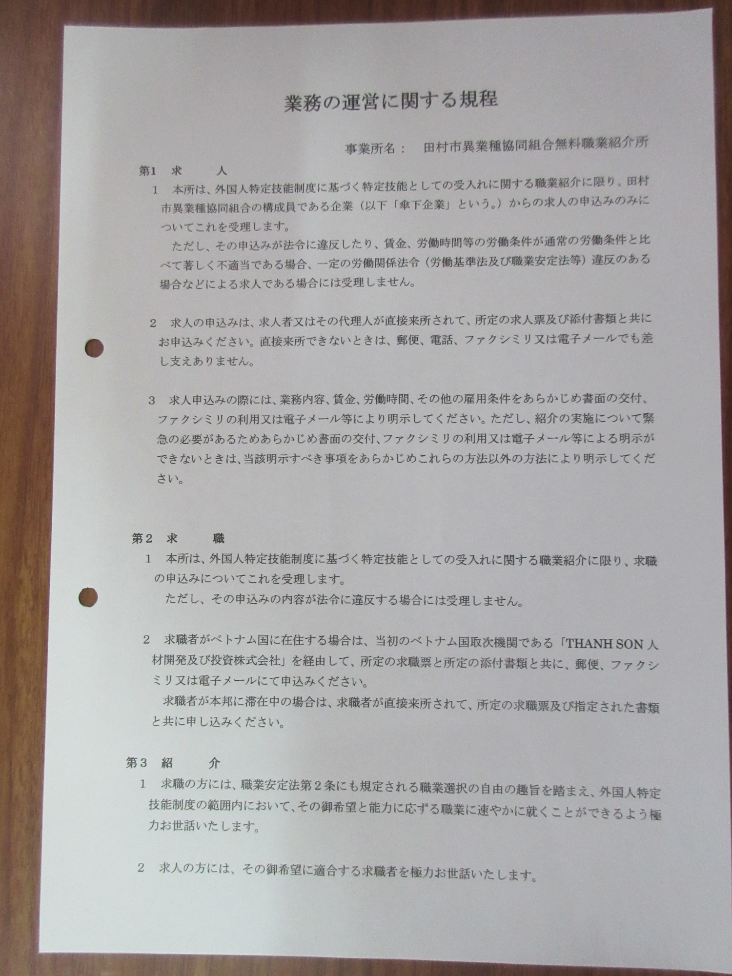 無料職業紹介事業届出に際し、業務の運営に関する規程を改定した。